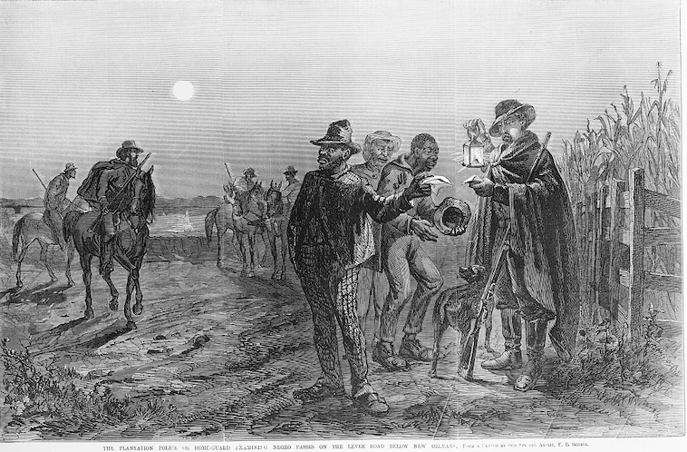 “It was part of my business to arrest all slaves and free persons of color who were collected in crowds at night, and lock them up. It was also part of my business to take them before the Mayor. I did this without any warrant, and at my own discretion. Next day they were examined and punished. The punishment is flogging. I am one of the men who flog them. They get not exceeding thirty-nine lashes. I am paid 50 cents for every negro I flog. The price used to be sixty-two and a half cents. I am paid fifty cents for every negro I arrest, and fifty cents more if I flog him. I have flogged hundreds. I am often employed by private persons to pursue fugitive slaves. I have been thus employed since 1838. I never refuse a good job of that kind.” (quote taken from Slave Patrol, by Sally Hadden)