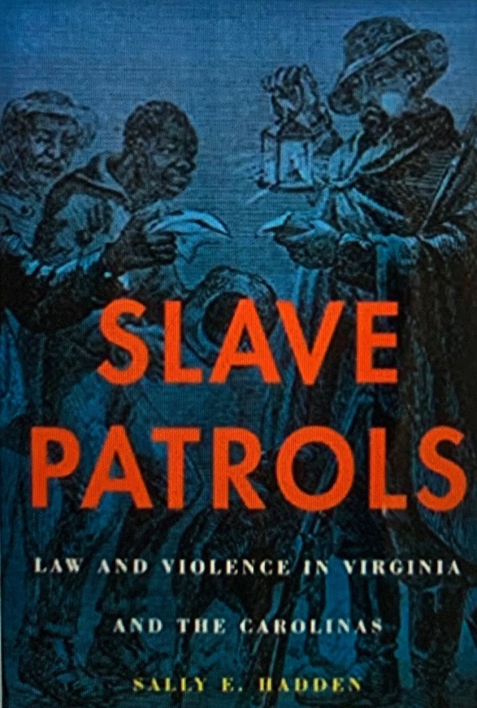 So, who were the patrollers? According to Sally Hadden’s insightful book, Slave Patrols – Law and Violence in Virginia and the Carolinas, patrollers were not in short supply.