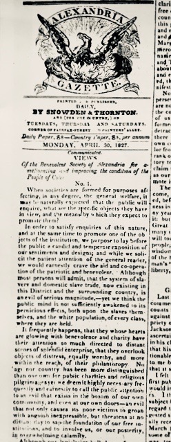 Of the Benevolent Society of Alexandria for ameliorating and improving the condition of the People of Color [Essay] No. 1: