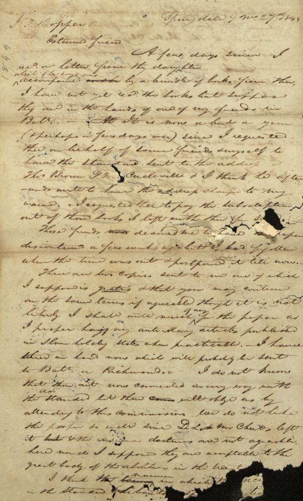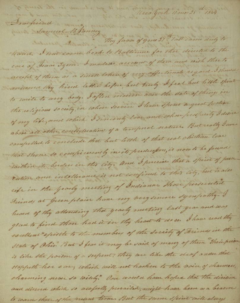 “Esteemed friend…” Isaac T. Hopper and Samuel M. Janney letters Sept/Nov 1844